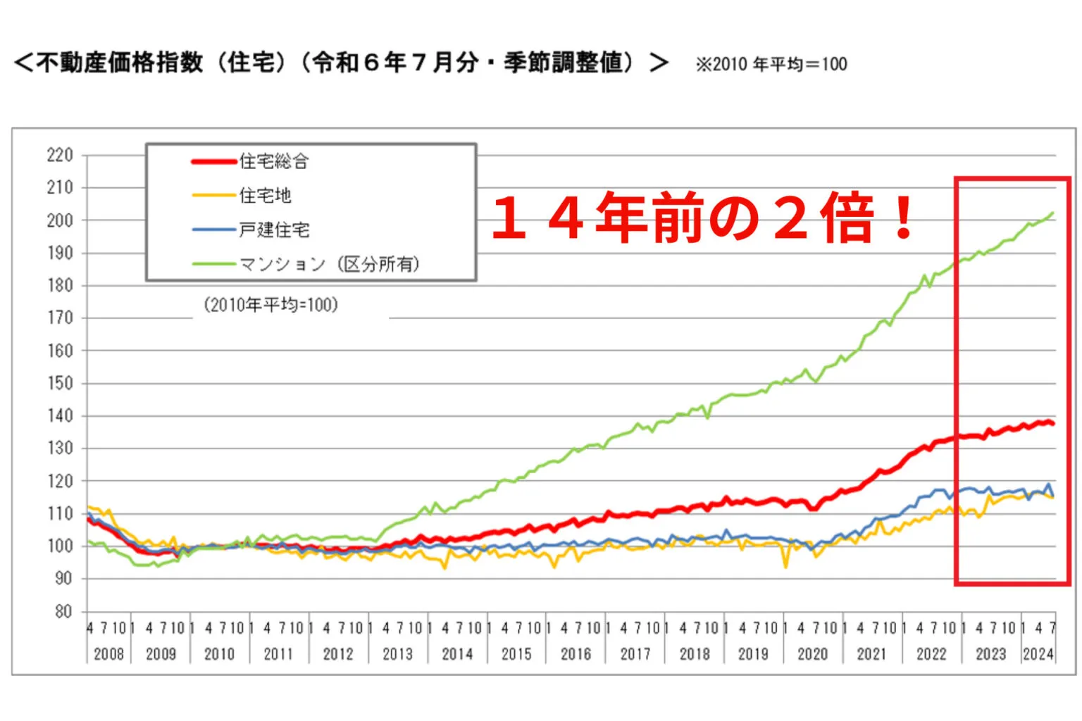 不動産価格はマンションが14年前の2倍