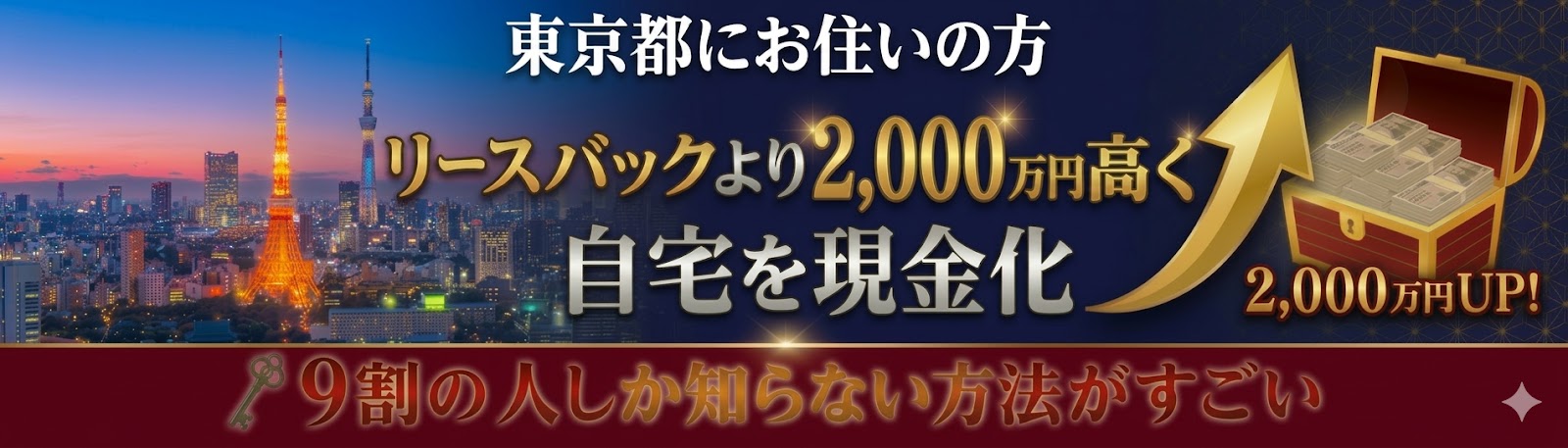 東京都でリースバックを検討中の方!2,000万円高く自宅を現金化!9割の人が知らない方法!